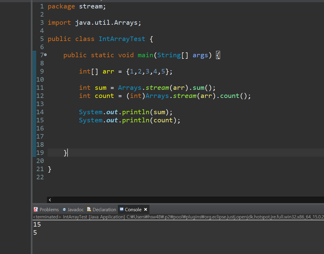 최종 연산 후에 스트림은 더 이상 다른 연산을 적용할 수 없음