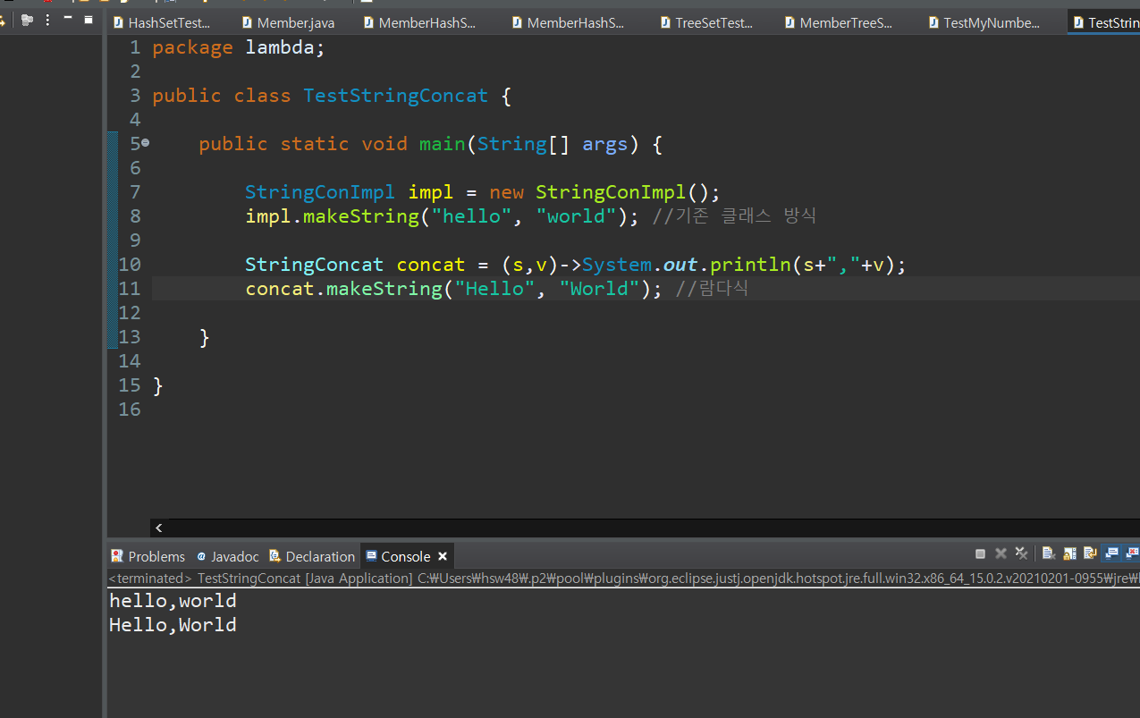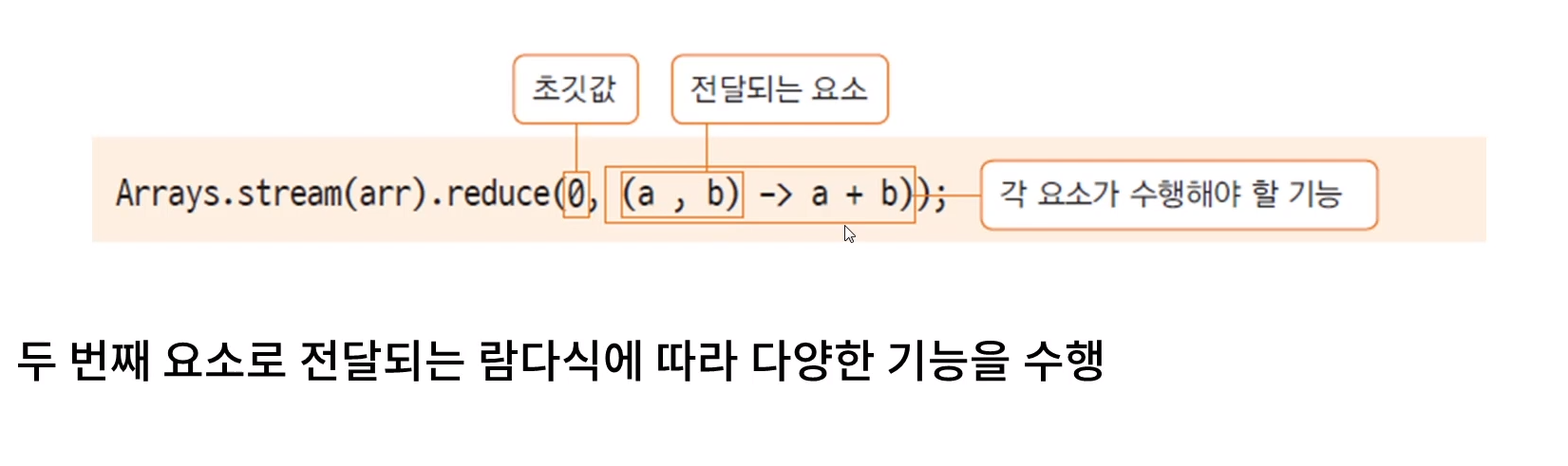 스트림에 구현부는 람다식으로 쓰이고 있다 (사진참조)