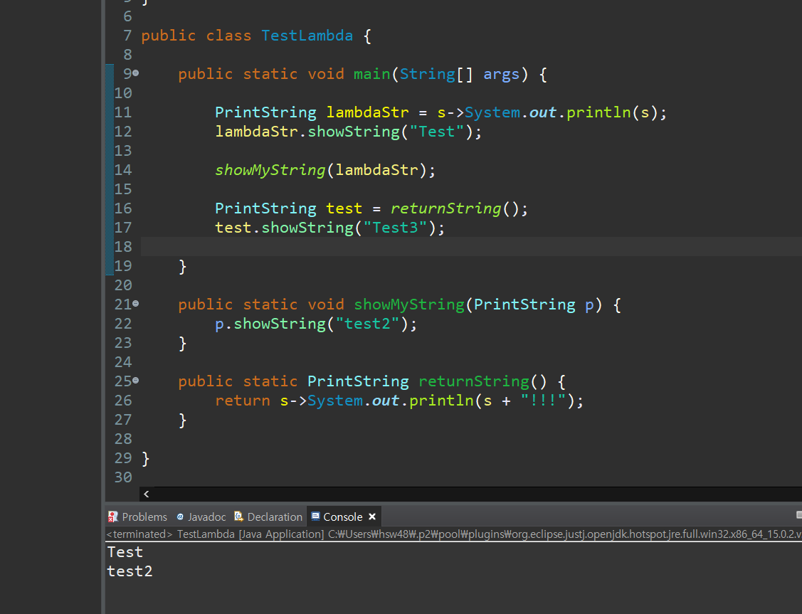 람다식은 프로그램내에서 변수처럼 사용할 수 있음