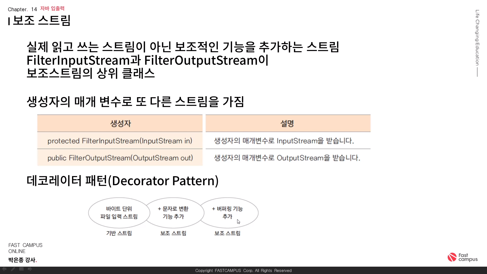 protected FilterInputStream(InputStream in) 생성자의 매개변수로 InputStream을 받습니다.