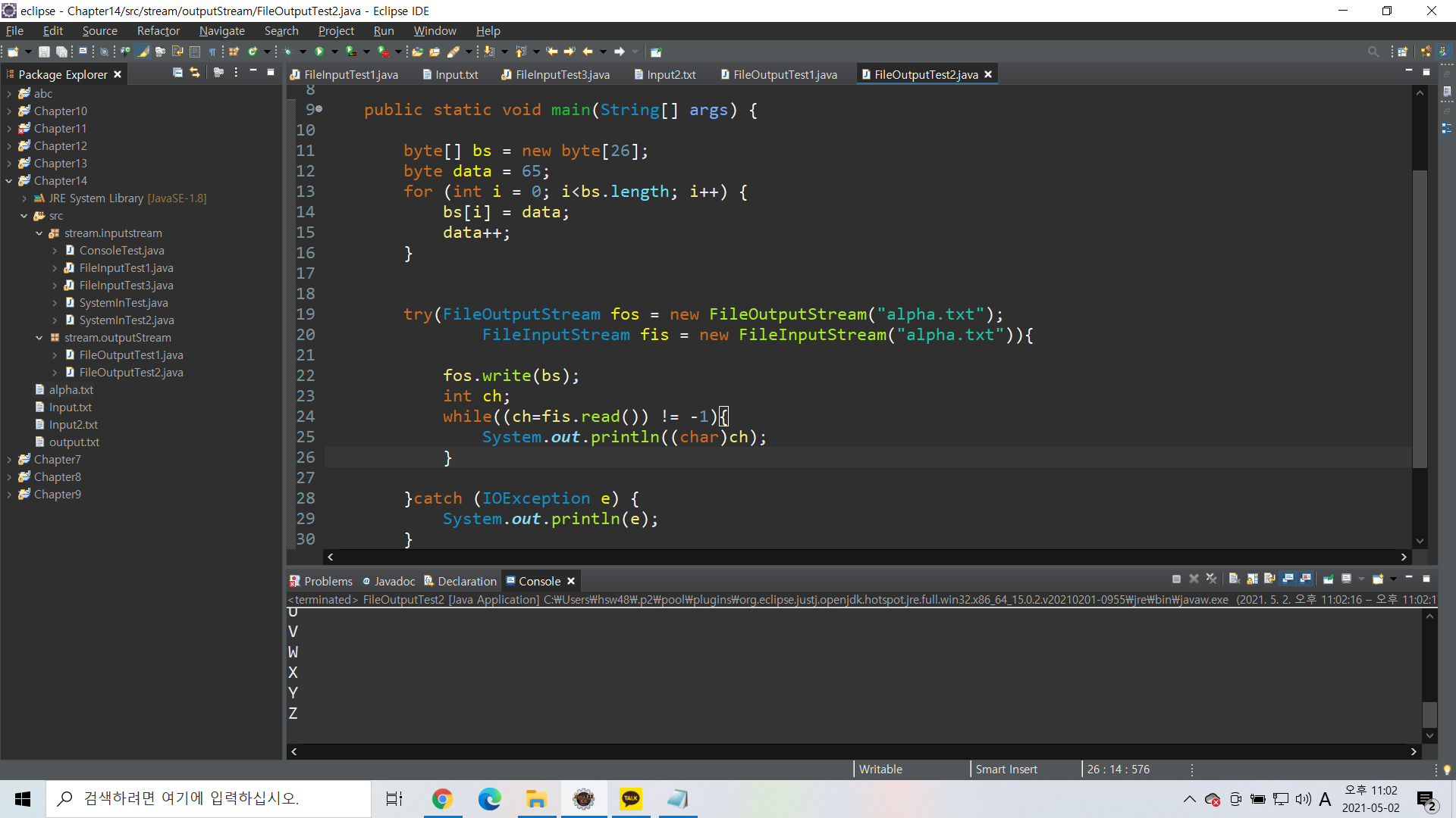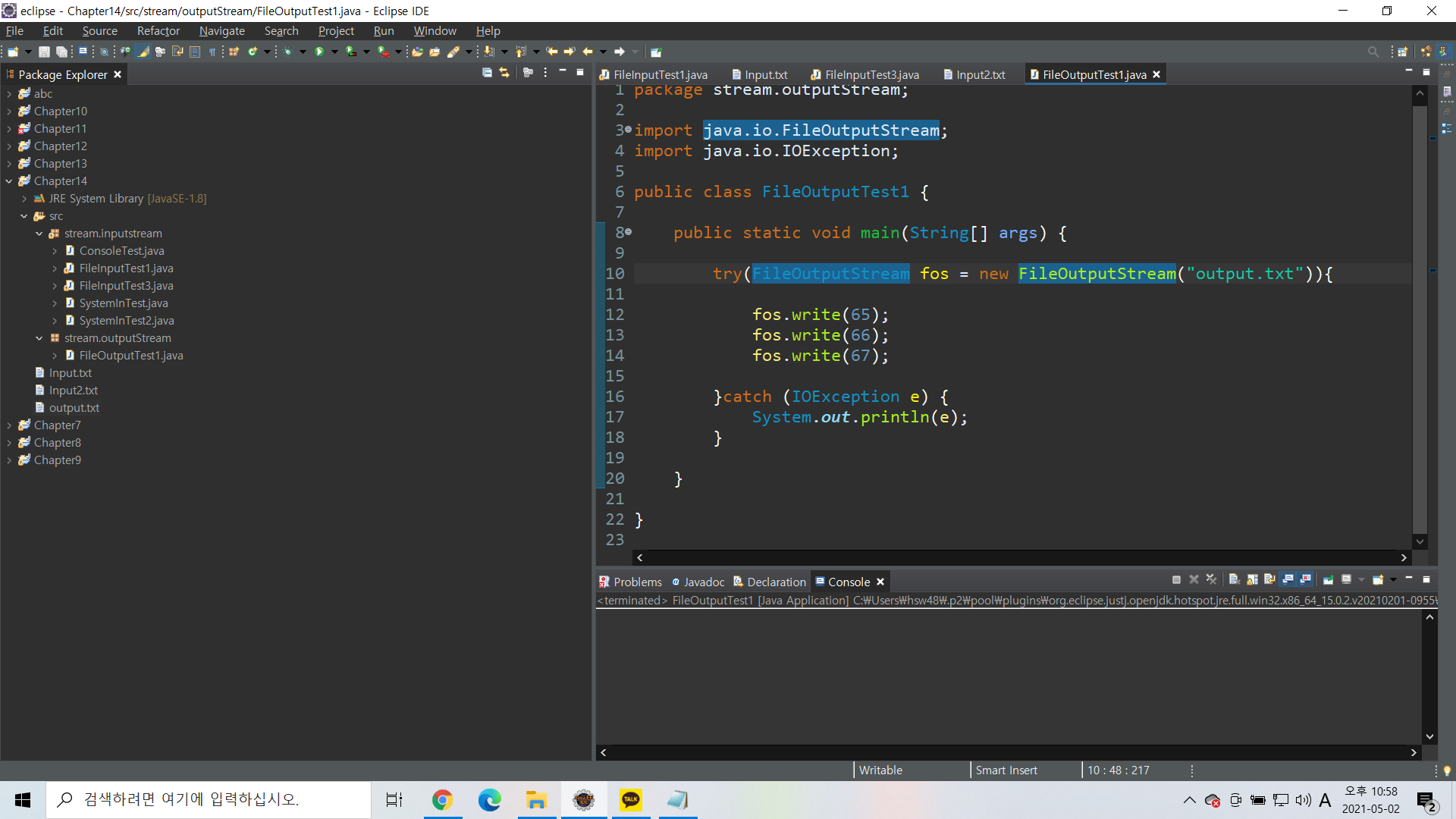 출력 스트림은 파일이 없는 경우 파일 생성하여 출력