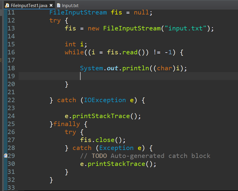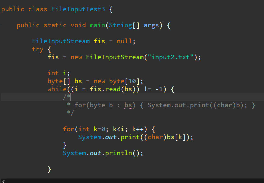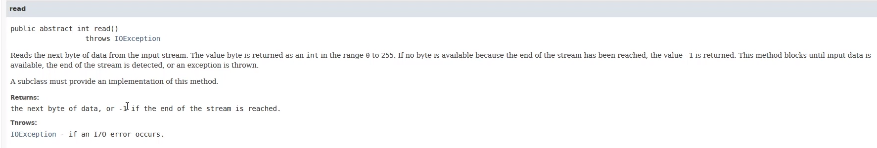 한 바이트씩 읽어 들임 (반환값은 int로 되어있음)