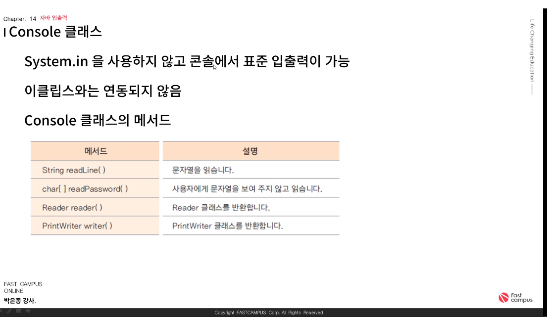 Console 클래스의 메서드