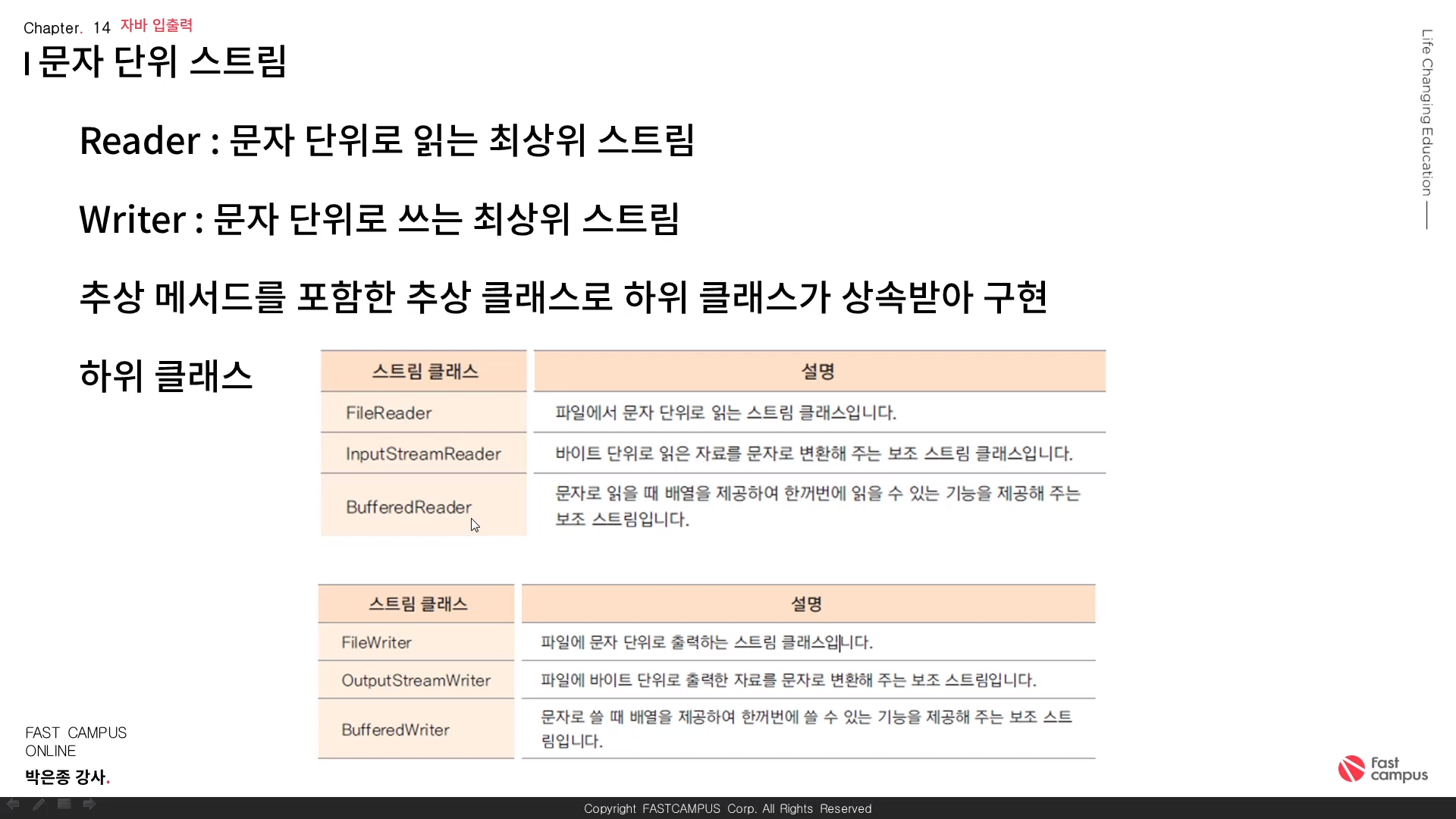 파일에 문자를 읽고 쓸때 가장 많이 사용하는 클래스