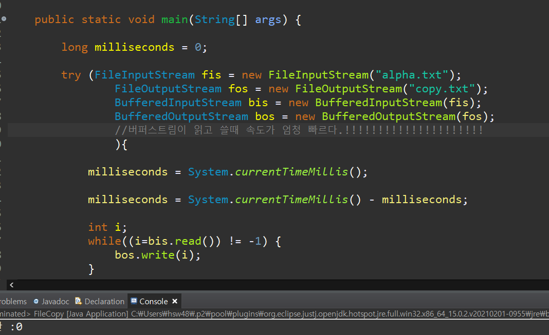 Buffered 스트림 : 내부에 8192 바이트 배열을 가지고 있음, 읽거나 쓸 때 속도가 빠름