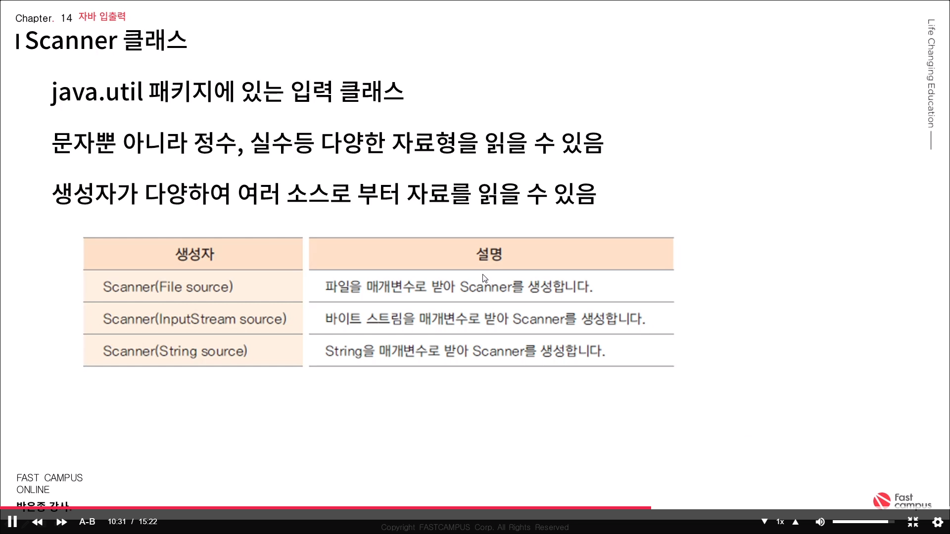 Scanner(InputStream source) 바이트 스트림을 매개변수로 받아 Scanner를 생성합니다.