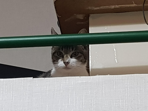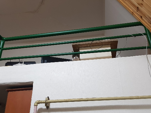 쟤는 날 관찰하는동안 아랫층에 캣타워를 설치 했다.