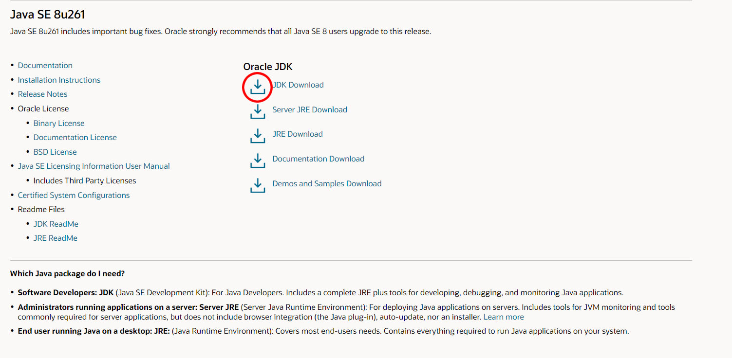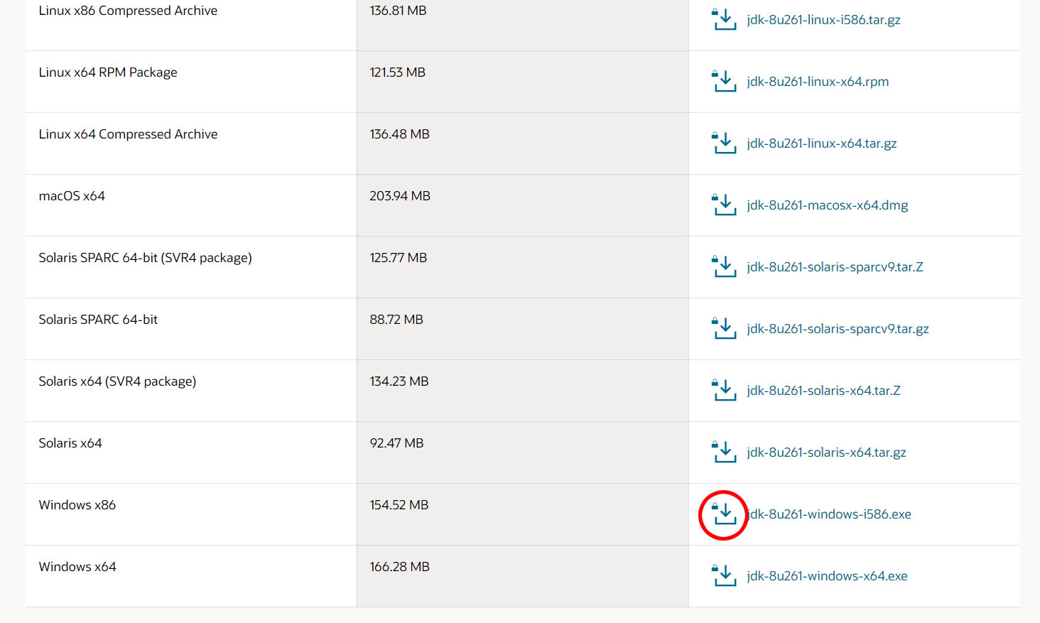 4. 밑으로 스크롤을 내려 JDK SE 8버전을 다운 받는다