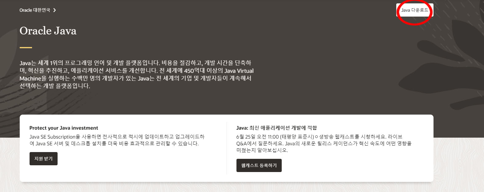 오라클 공식홈페이지에서 다운받을수 있으며, JDK 다운받을때 로그인이 필요합니다.