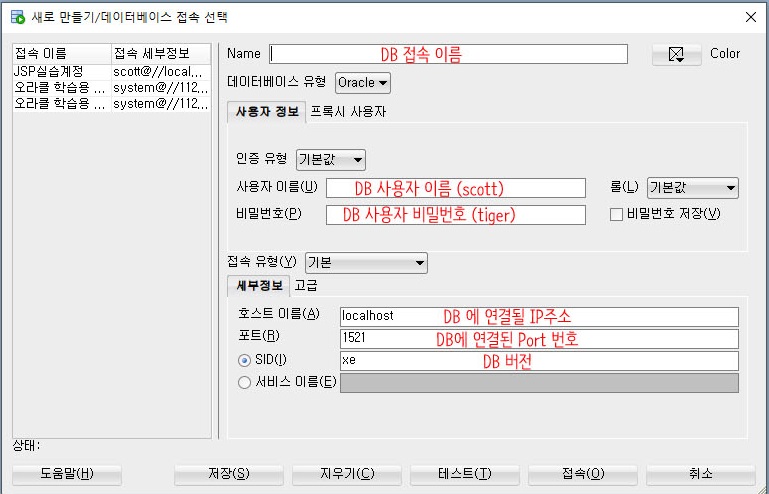DB에 접속하기 위해서는 접속이라는 버튼을 클릭후 사용등록을 해야한다