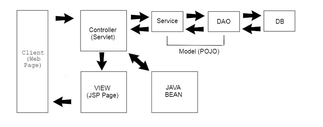 예를들면 게시판 글 등록, 글 수정, 글 삭제등의 모든 작업은 DAO를 통해 DB와 연동되어 처리되며, 그 값을 View 페이지로 전달하게 된다.