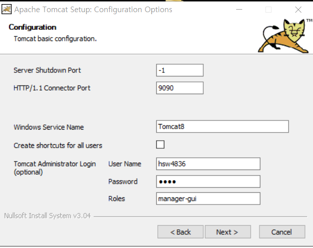 Tomcat Administrator Login : 톰캣 이름, 비밀번호 입력하는곳인데 공란으로 주어도 상관없다.
