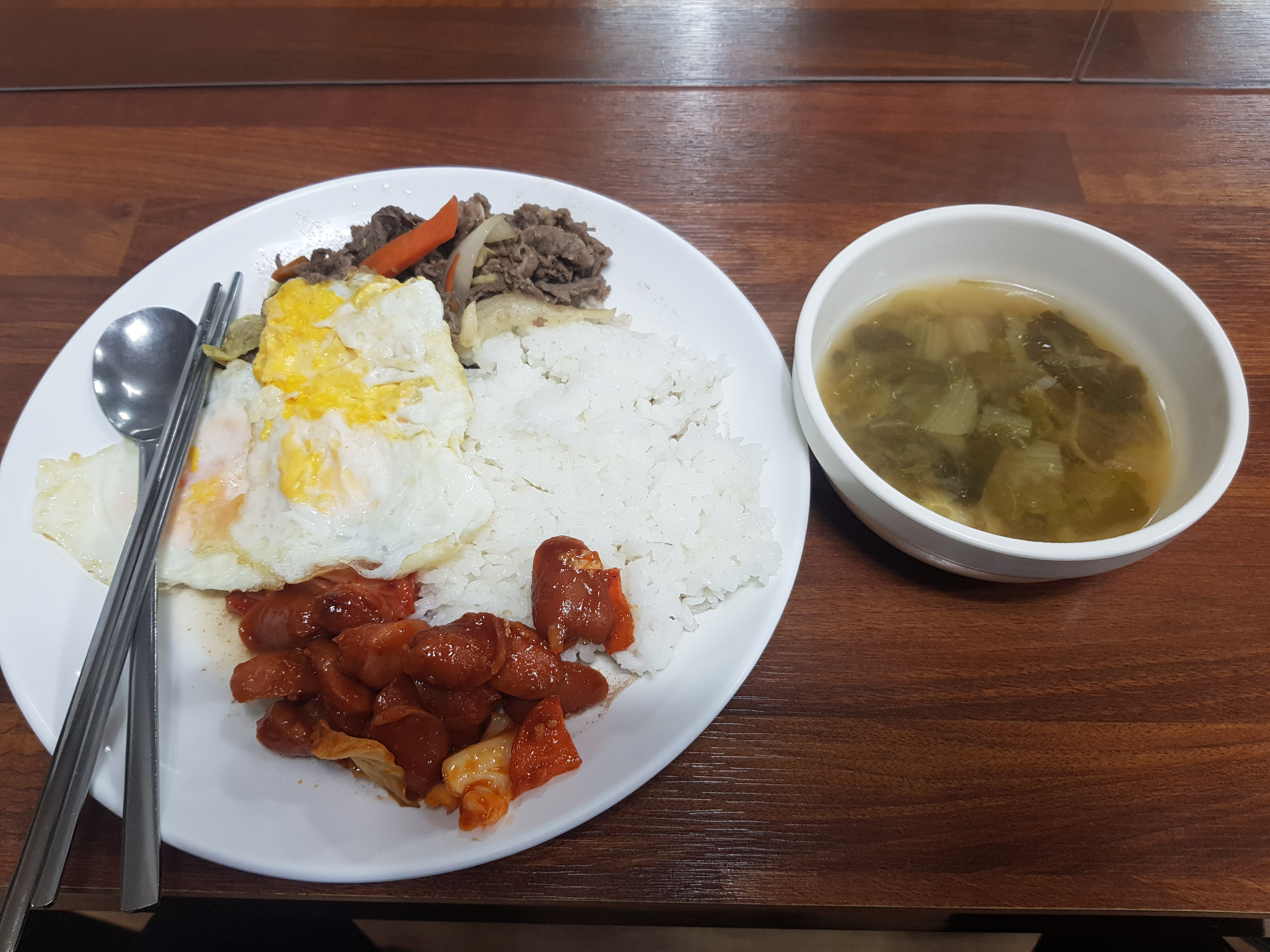 적당한 고기와 야채.... 맨날 아침에 나오는 계란 후라이드, 내가 갔던 현장중엔 여기가 상급에 속한다.