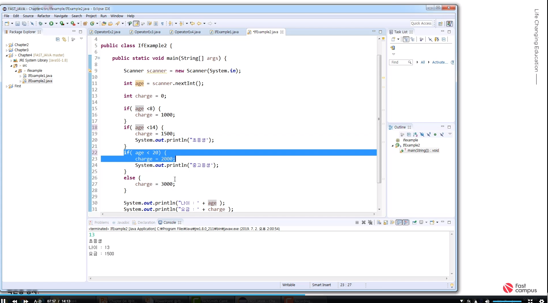 그래서 else if 조건을 써야지만 같은 조건식으로 사용할수 있다.