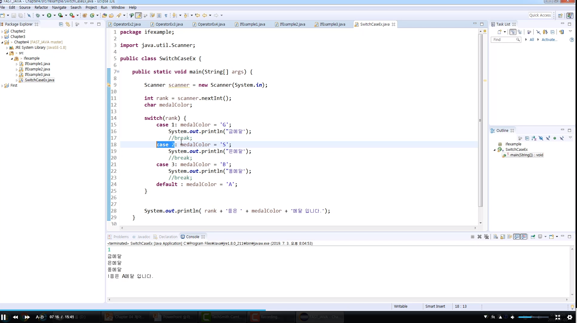 하나의 조건에 대한 여러 경우에 대해 수행문이 각각 다른 경우