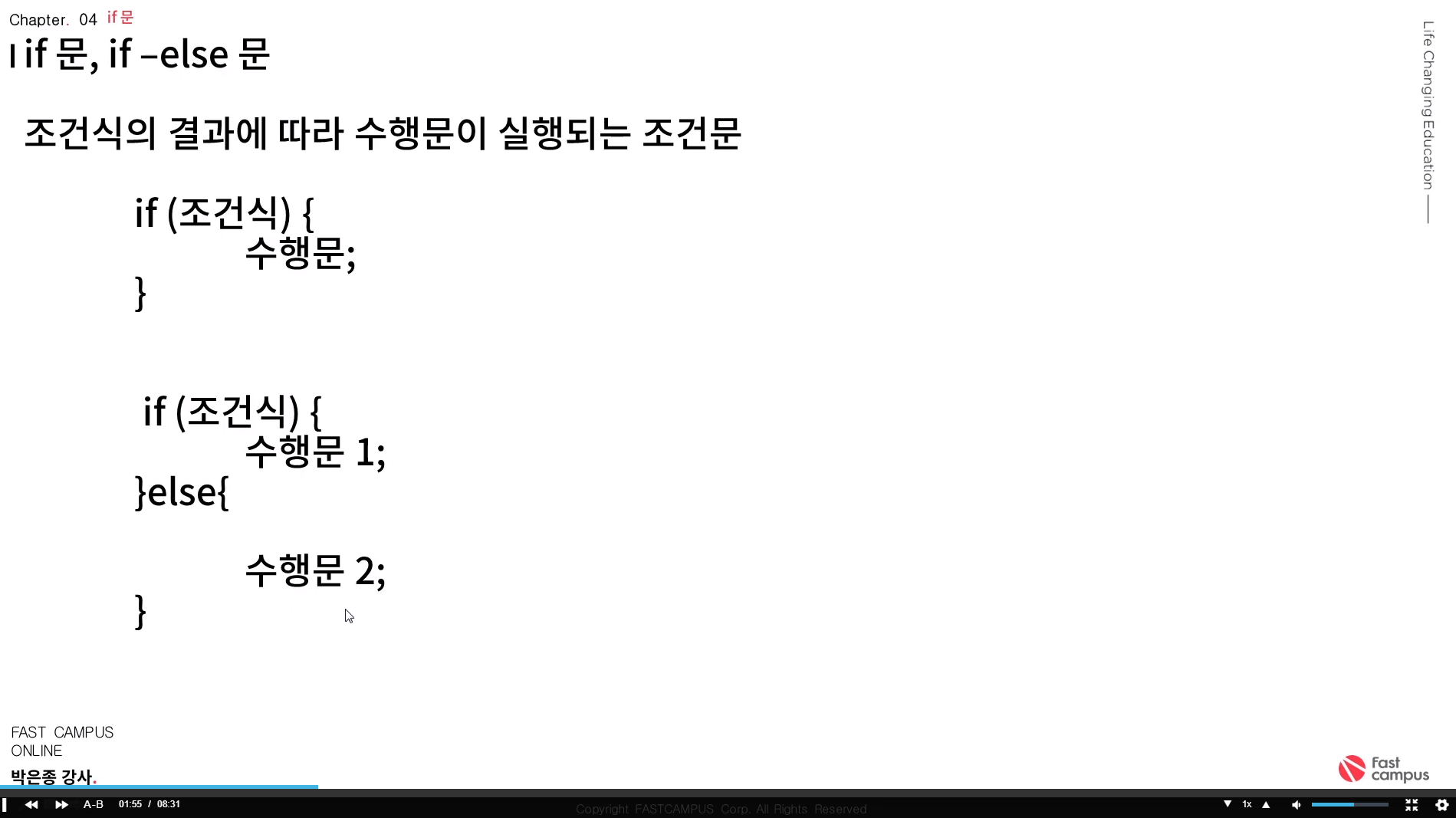 * 만약 문장이 하나이면 블럭사이에 중괄호를 안 써도 된다. 하지만 되도록 써주자!!