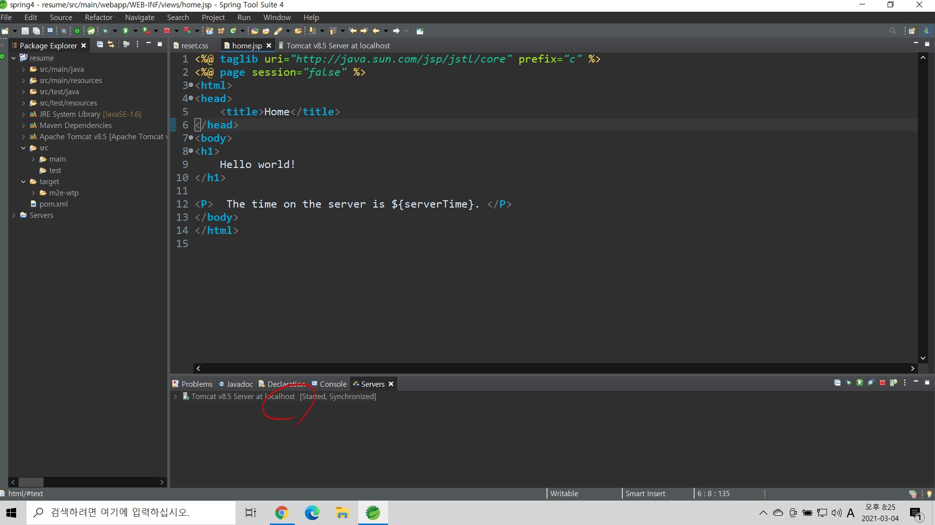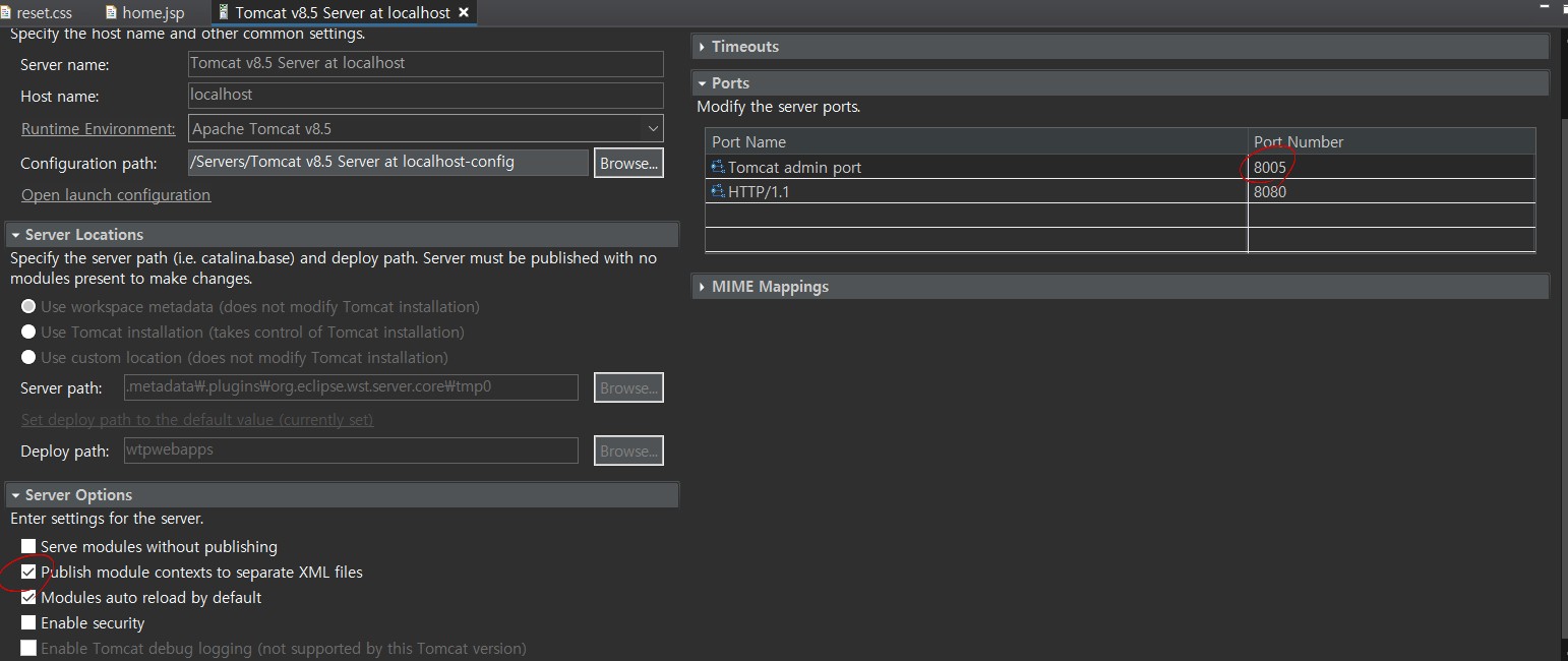 서버탭을 떠블클릭하자.