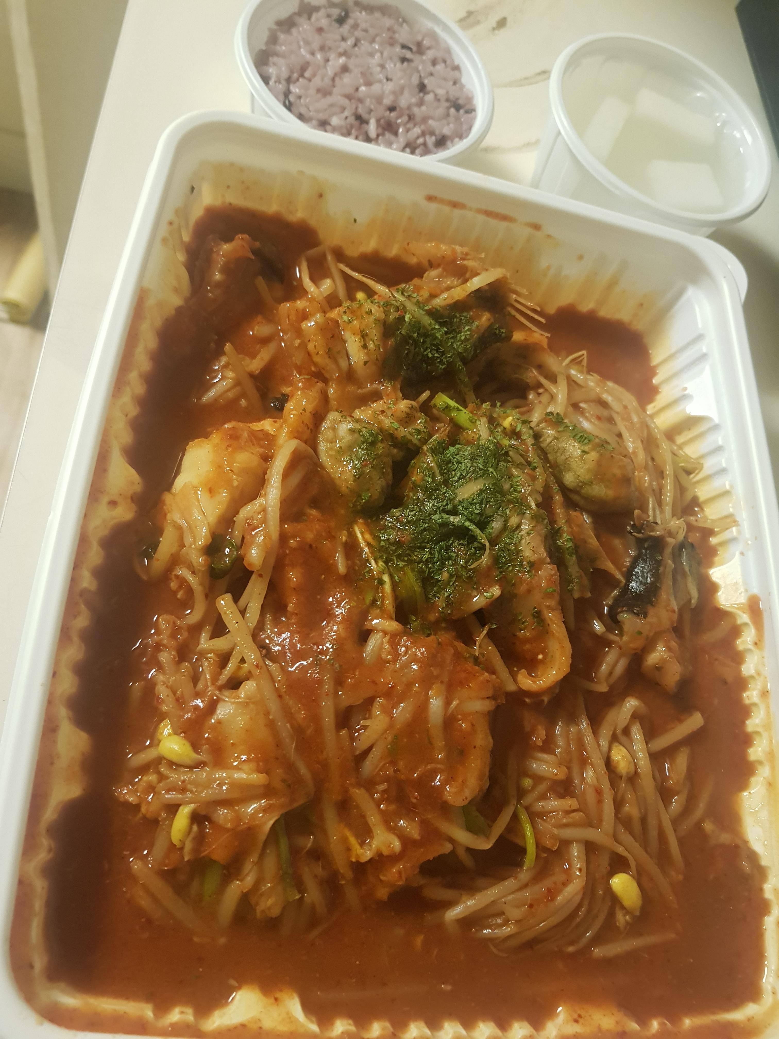 아침에 시킨 아귀찜. 개인적으로 매콤한 해물찜과 쫀득쫀뜩한 아귀찜을 엄청 좋아한다.