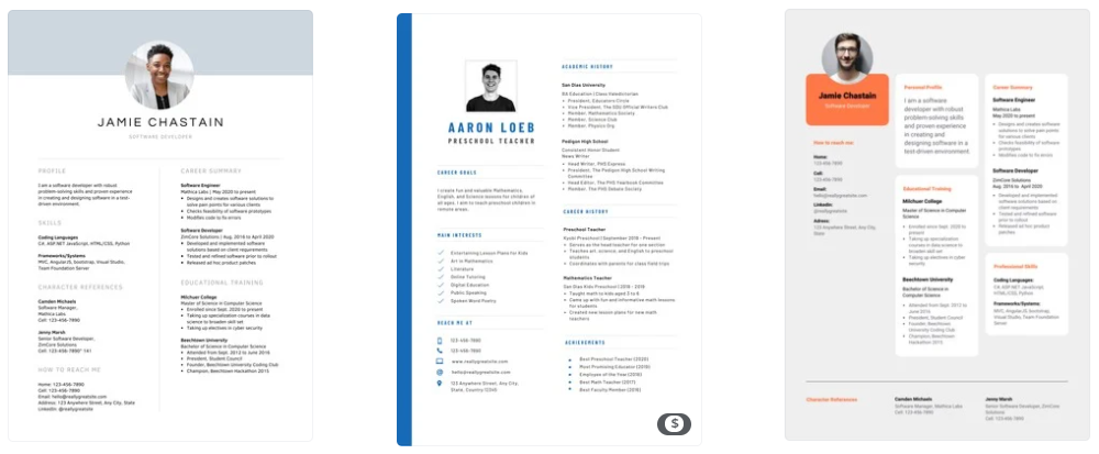 이력서 디자인은 구글에서 free resume template를 참고하기로 하고 나에게 맞게 조금 변형되어서 쓸 예정이다.