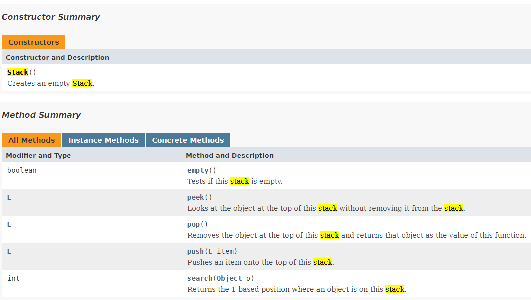 docs.oracle.com/javase/8/docs/api/ (자바8 API 입니다. 스택을 설명하고 있다.)