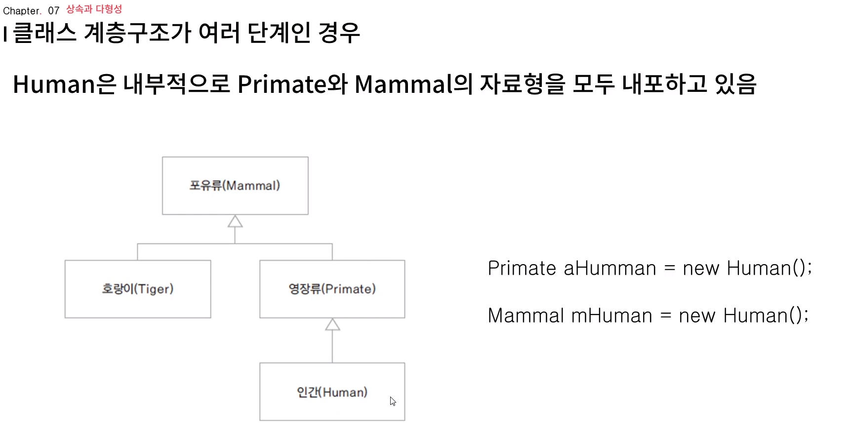 Human은 내부적으로 primate와 mammal의 자료형을 모두 내포하고 있음 (사진참조)