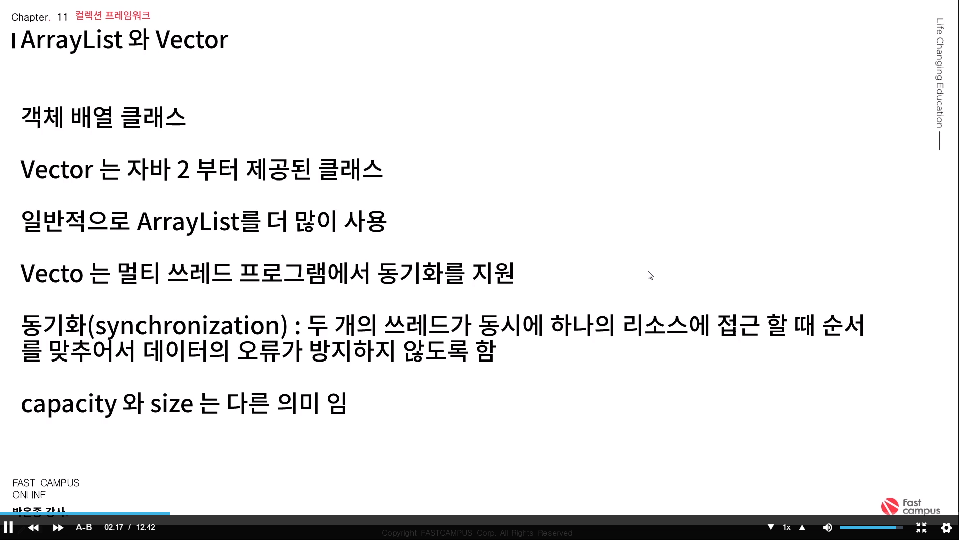 일반적으로는 ArrayList를 더 많이 사용 (Vector보단 ArrayList가 더 최근에 나옴)