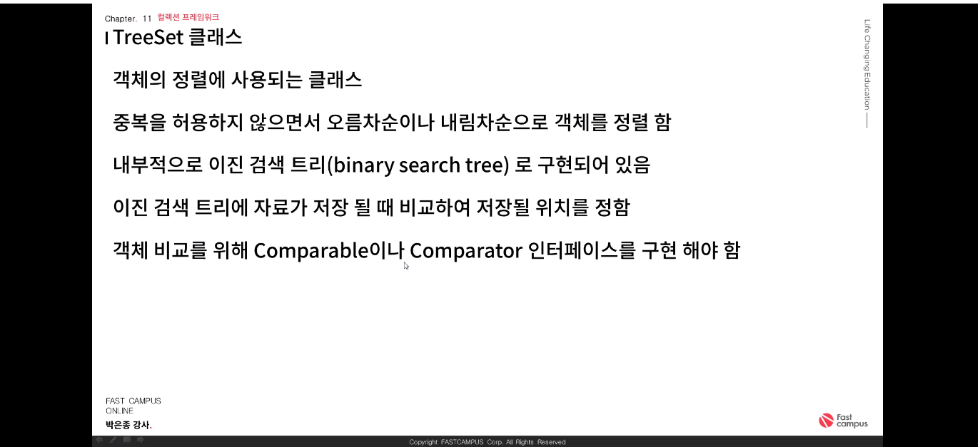 Tree가 붙으면 정렬을 위해서 사용것이고 내부적으로 바이너리 서치트리를 씀