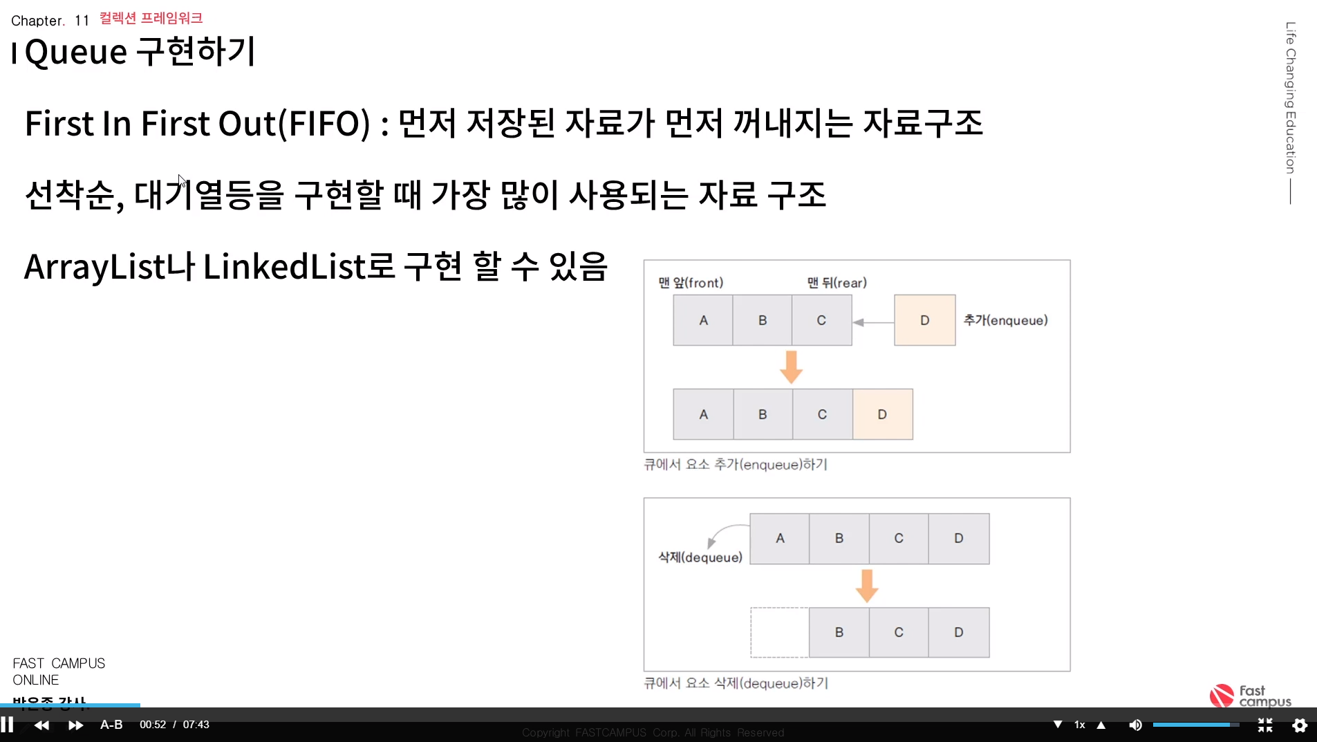 선착순, 대기열등을 구현할 때 가장 많이 사용되는 자료구조