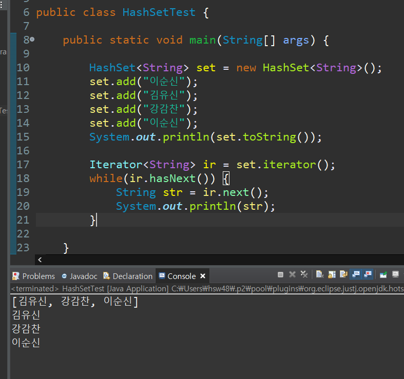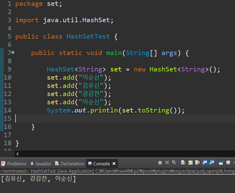 List는 순서기반의 인터페이스지만, Set은 순서가 없음