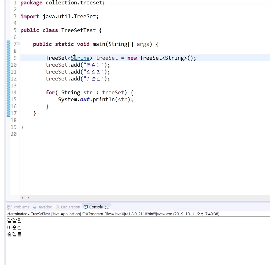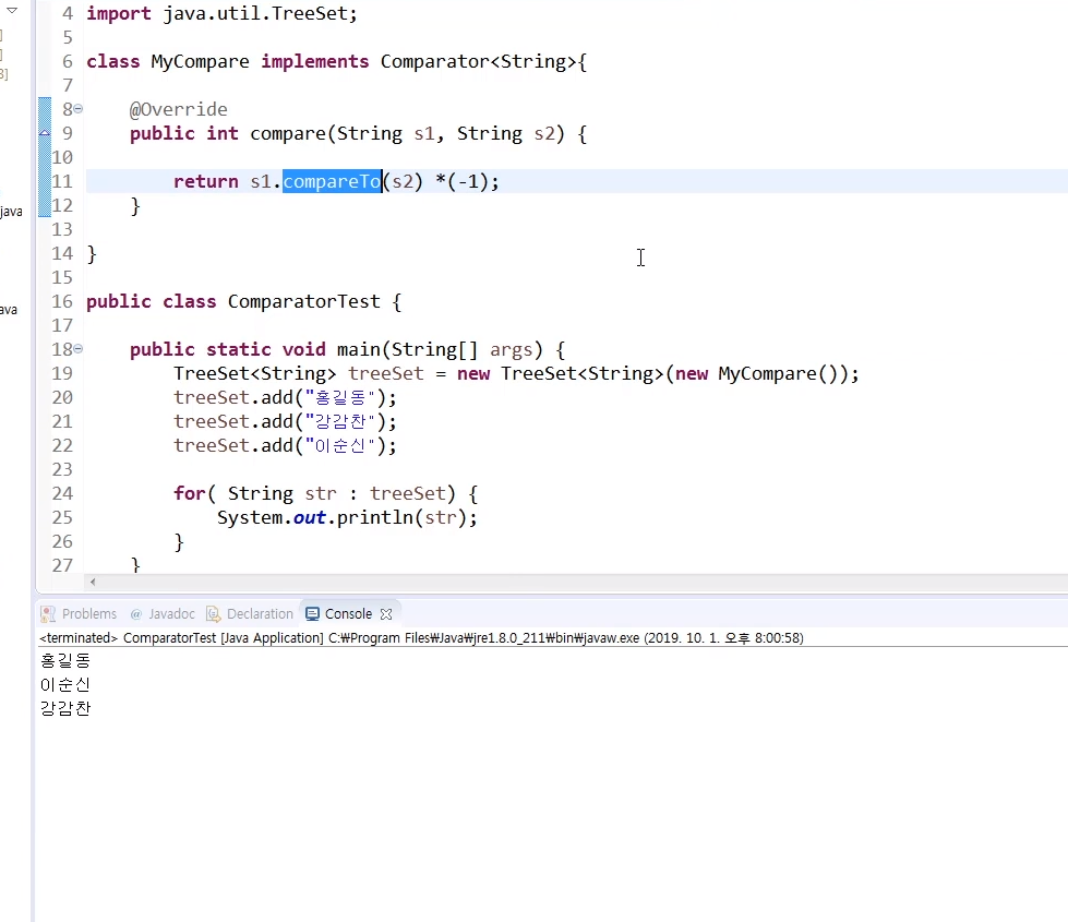 TreeSet 생성자에 Comparator가 구현된 객체를 매개변수로 전달