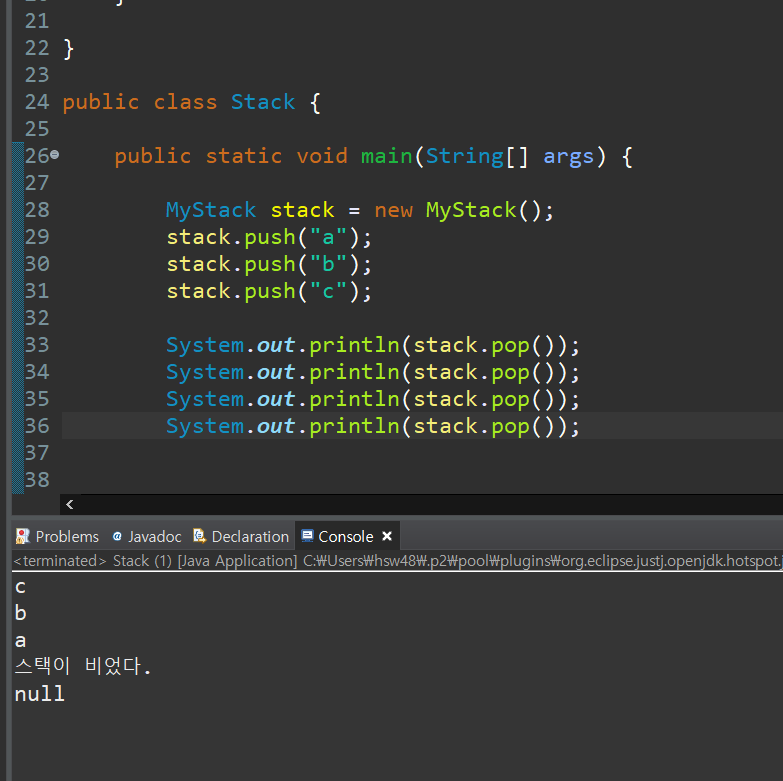 Stack 구현하기 (자바에서 이미 구현되어 있다.)