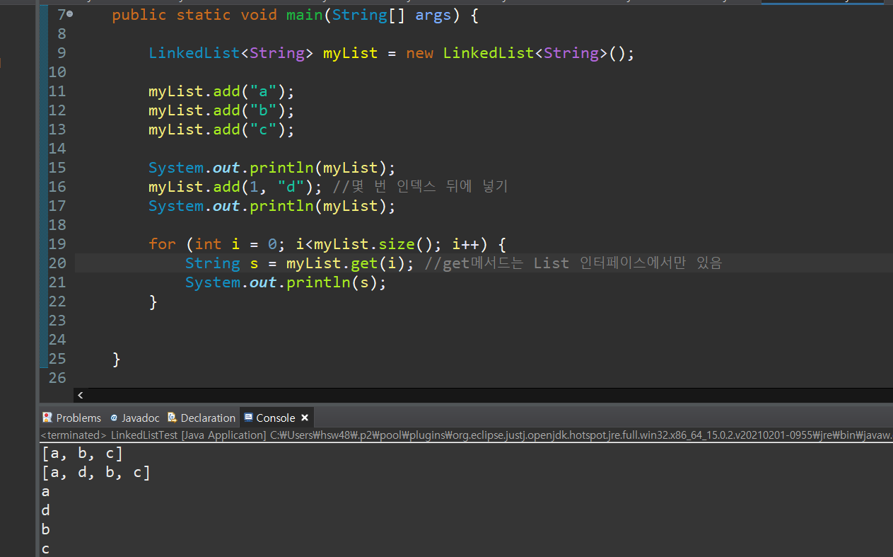 LinkedList에서 자료의 추가와 삭제 (사진참조)
