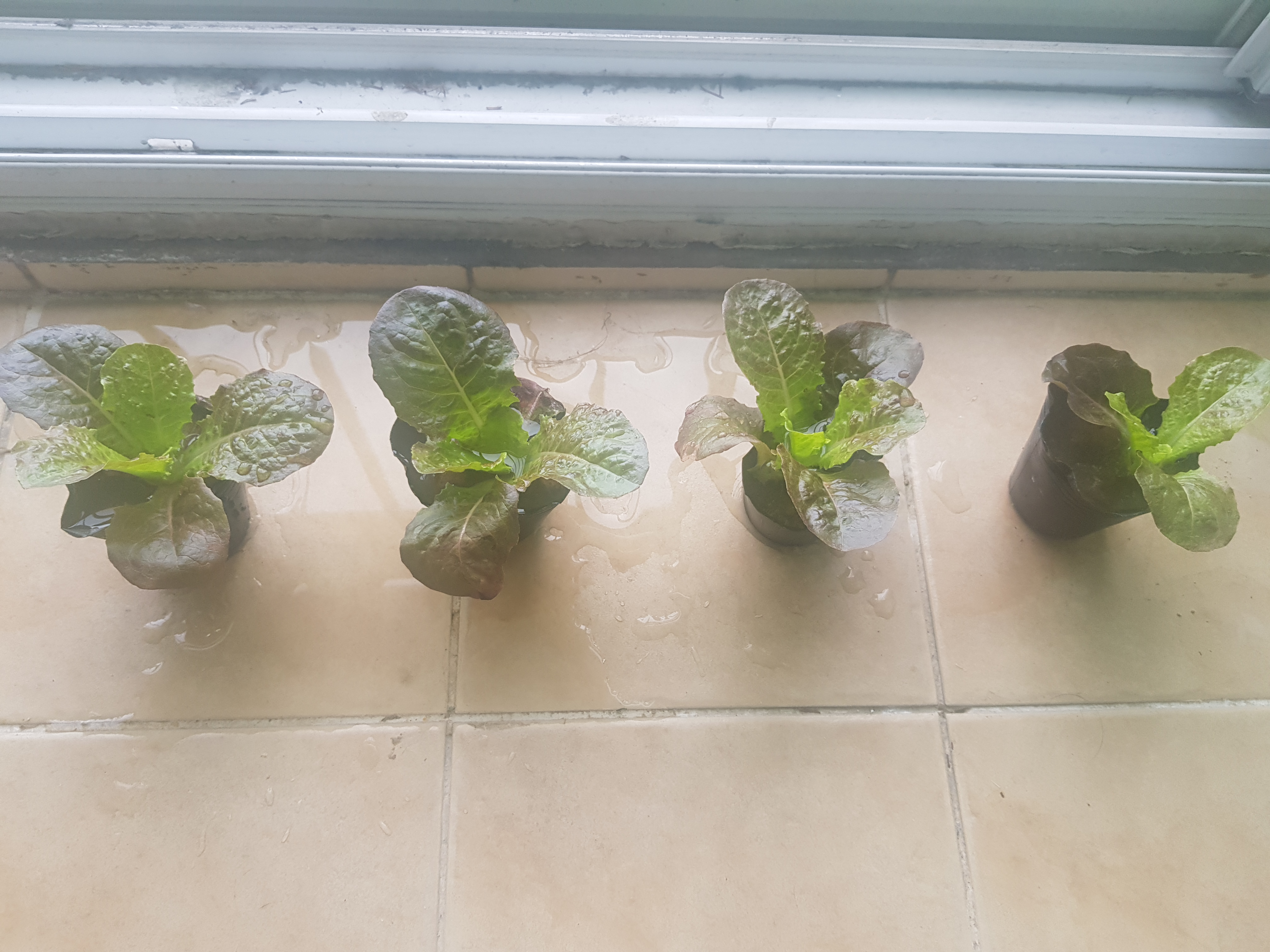 21.04.27 아침에 본 상추 4인방이 파릇파릇해 보인다. 약간 걱정이었던 4번째도 물을주고 지켜보니 괜찮아 졌다.
