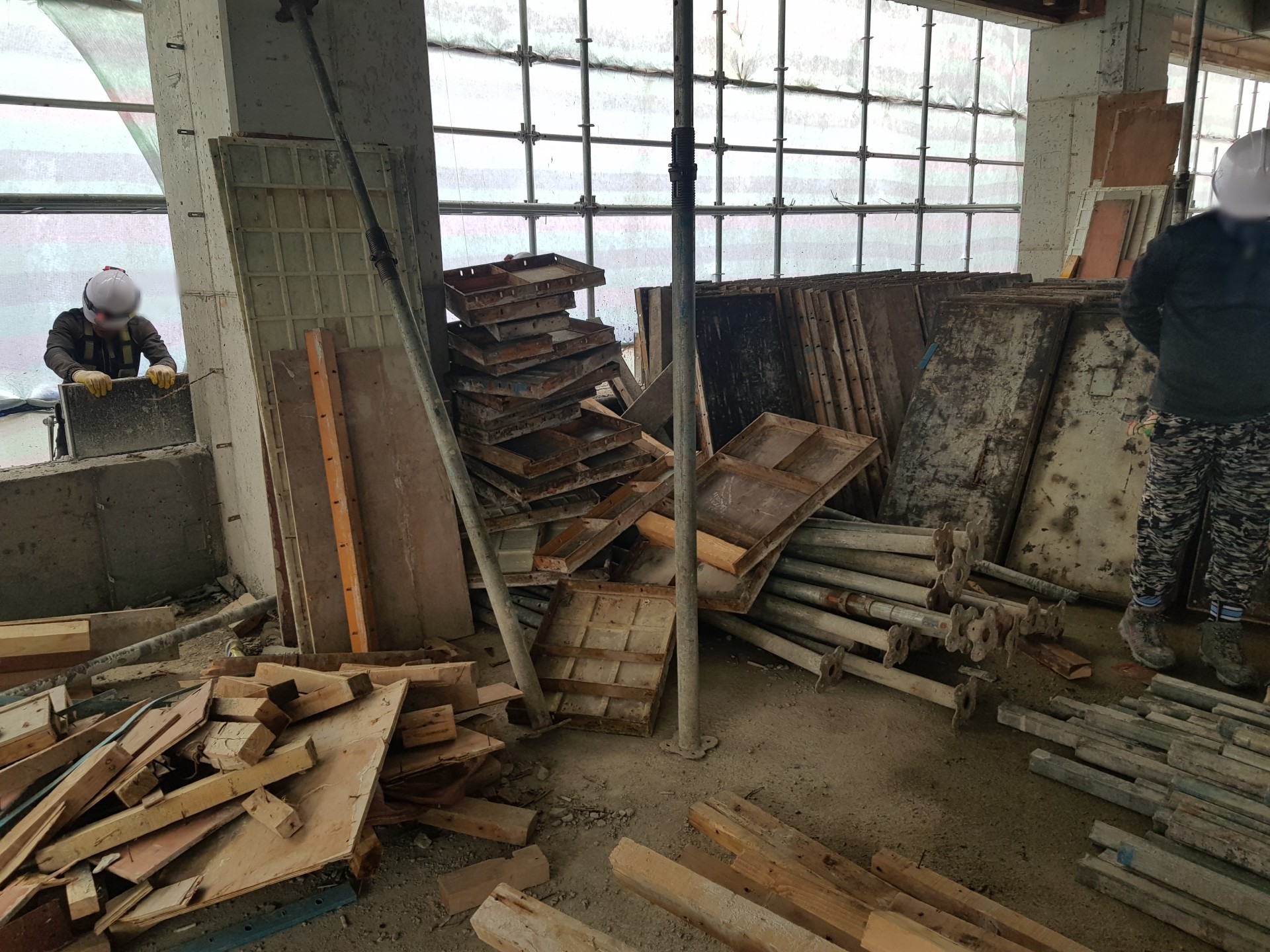 오늘 현장은 8층 건물 이였다. 정리 및 인양을 했는데 타워크레인을 못 쓰는 현장이라 자재들을 전부 인양했다. 인양을 따로 할수있는 구멍도 없어서 전부 외곽에 설치된 시스템비계 쪽으로 인양하기로 했다.
